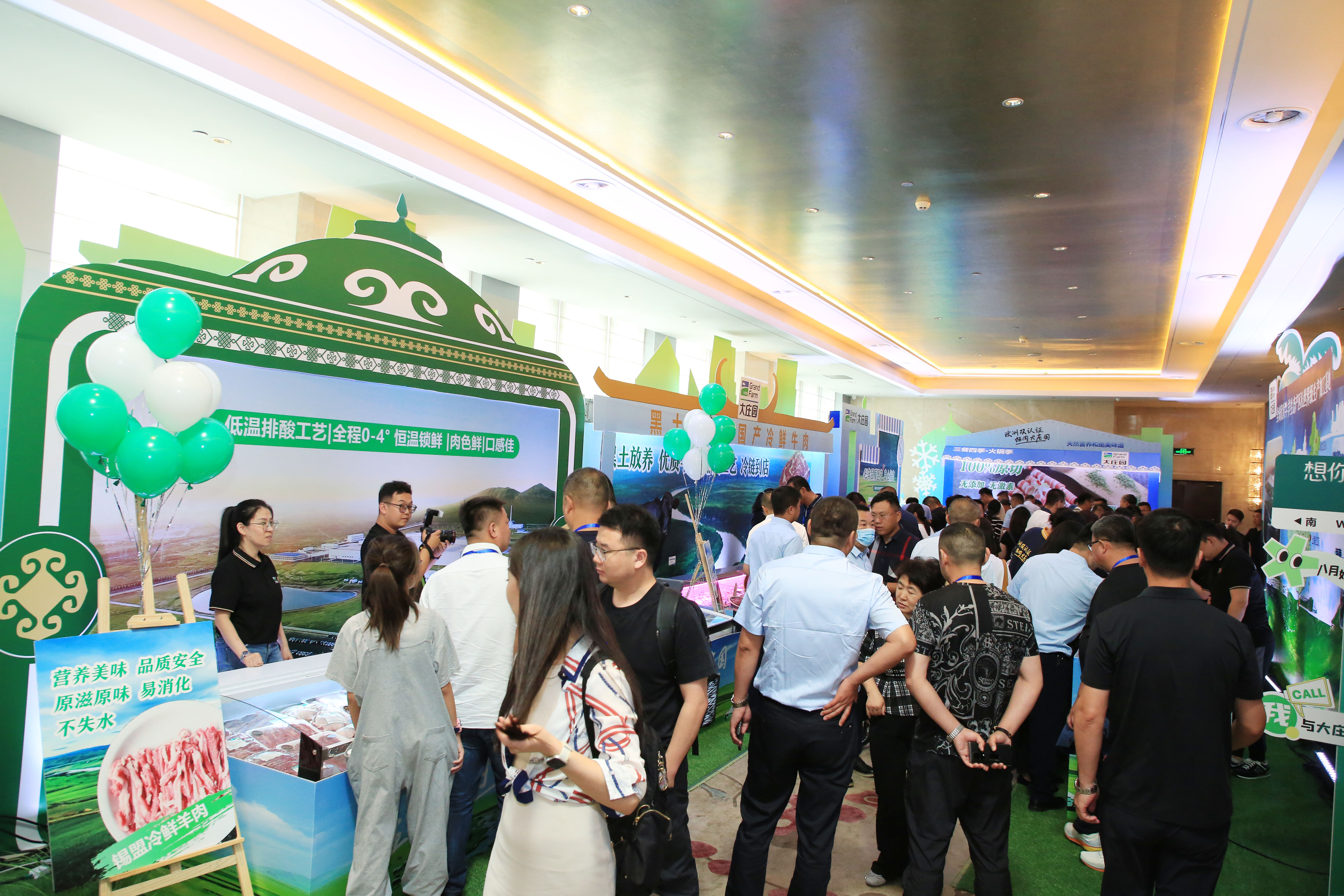 參觀結束后,合作伙伴們乘車回到峰會主會場。大莊園早已準備了明星產品品鑒沙龍,帶骨羔羊排串、臻香羊排、甜糯玉米、錫盟羔羊前腿、錫盟羔羊A排、潮汕牛肉丸、麻辣牛肉、鮮牛百葉、牛羊肉卷、牛羊肉燒烤串??10余款明星產品、50余款美味佳肴,酒店大廚現場烹飪,并有專門人員現場講解,讓各位合作伙伴們“即飽了眼福更飽了口福”,真真切切地體會到了莊園產品的高品質和好味道。
